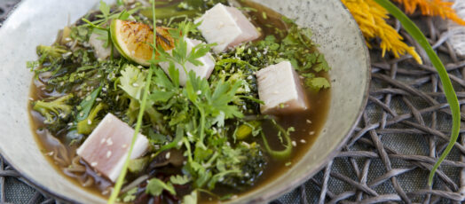 Sushi ryžový šalát s tuniakom, bielou reďkovkou a avokádovou thajskou omáčkou