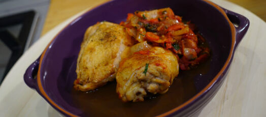 Kuře s pečenou paprikou a olivami