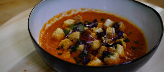 Rajčatová polévka s pečenými paprikami