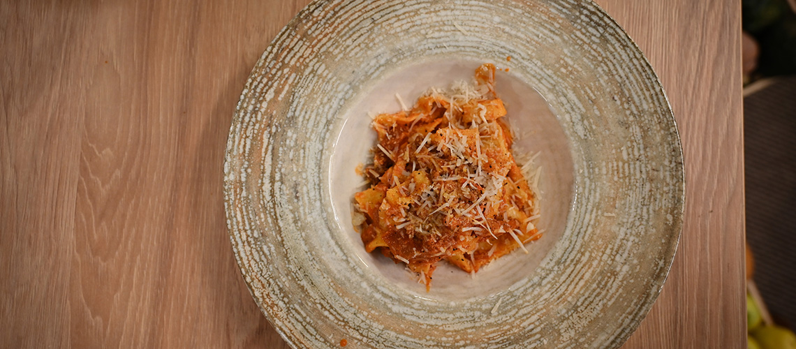 Elkészítés: A tésztát elkészítjük: a lisztet összekeverjük a tojással, majd fóliába tesszük egy kicsit pihenni. Egy serpenyőben lepirítjuk a tokaszalonnát, rátesszük a paradicsomszószt, és a reszelt pecorino sajtot. Megfőzzük a tésztát, összekeverjük a szósszal, és tálaljuk.