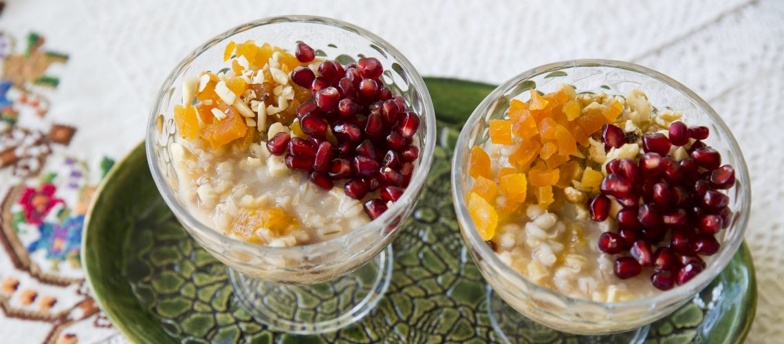 A gerslit előző nap főzzük meg: megmossuk, majd háromszoros vízben, csipet sóval, kb. 1 óra, takarékon, alatt teljesen puhára főzzük. Ezalatt a gersli opálossá teszi a vizet, és besűrűsödik. Amikor megfőtt, hozzáadjuk a mézet (ízlés szerint). Az aszalt sárgabarackot és a mazsolát forró vízbe beáztatjuk. Az aszalványok és a magok felét a gerslipudingba keverjük, az egyharmadát megtartjuk díszítésre. A puding másnapra teljesen összeáll. Kis tálkákba, vagy üvegpoharakba töltjük, majd a tetejét megszórjuk magokkal, apróra vágott aszalt gyümölcsökkel és gránátalmamaggal.