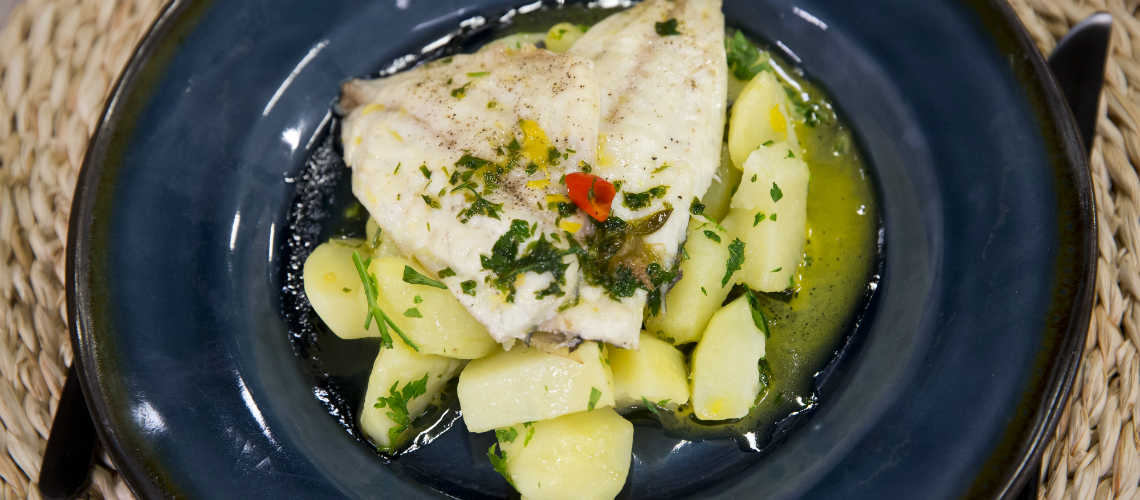 Meghámozzuk a burgonyát és kockára vágjuk. Olívaolajos sós vízben megfőzzük, petrezselyemzölddel. A durbincsfiléket egy tepsibe helyezzük és olívaolajjal meglocsoljuk. Sózzuk, borsozzuk és fehérborral is meglocsoljuk. 210 fokra előmelegített sütőbe tesszük és 8 percig sütjük. A szószhoz vajon megpirítjuk az erős paprikát. Hozzáadjuk a kapribogyót, kevés konyakot öntünk hozzá és belefacsarjuk a citrusokat. Ha besűrűsödött, petrezselyemzöldet szórunk bele, és hozzátesszük a jéghideg vajat. A tányérra először a burgonya kerül, rá a durbincsfilé, amit meglocsolunk a narancsszósszal.