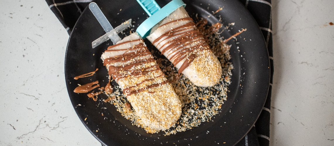 Turmixgépben összedolgozzuk a banánt, a vaníiliás cukrot és a kókusztejes keveréket. Jégkrémformába töltjük és éjszakára a mélyhűtőbe tesszük.