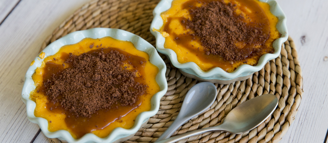 A kekszet turmixgépben ledaráljuk, és olvasztott vajjal összekeverjük. Kikeverjük a mascarponét a batátapürével, citromhéjjal, cukorral.