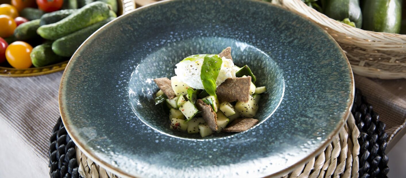 A cukkinit apró kockákra vágjuk és megsózzuk. Összekeverjük az olajat és a citromlevet, majd hozzáadjuk a mákot és a durvára tört rózsaborsot. Óvatosan összekeverjük, megszórjuk apróra vágott bazsalikommal, meglocsoljuk bazsalikomolajjal és azonnal tálaljuk.