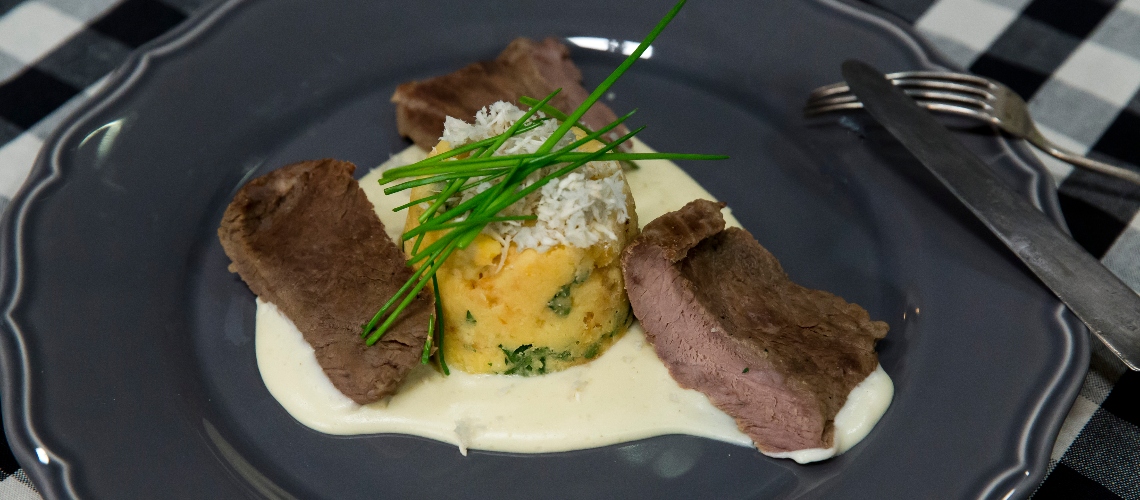 Vajból és lisztből egy besamel alapot készítünk. Adjunk hozzá tejet és reszelt friss tormát. 20 perc elteltével szűrjük le a mártást, sózzuk, borsozzuk, és tejszínnel krémesítsük. Keverjük össze a kenyér vagy pirítóskockákat a tojássárgájával, a tejjel és a petrezselyemmel. A fehérjéket verjük habbá, adjuk a masszához. Vajazzuk ki a bögrét, lisztezzük be, majd tegyük vízfürdőbe körülbelül 20 percre. Főtt marhahússal tálaljuk.
