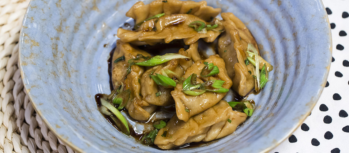 A tésztából korongokat formálunk és megtöltjük a töltelékkel. Forró vízbe főzzük rövid ideig, majd serpenyőbe téve ropogósra sütjük.