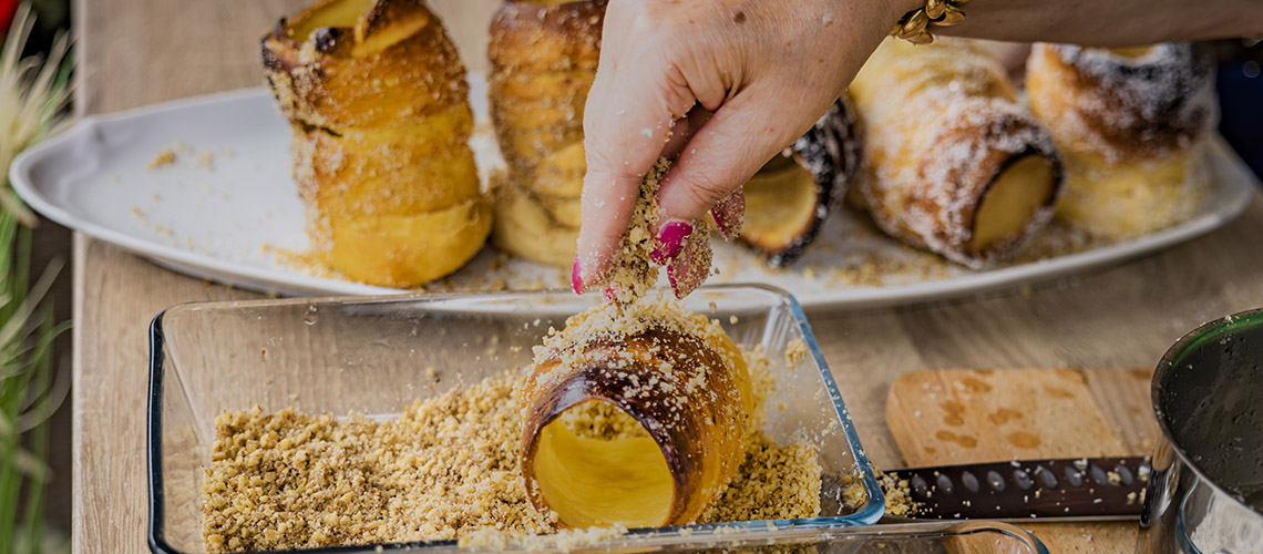 Kelt tésztát készítünk. Az élesztőt felfuttatjuk langyos tejben, hozzáadjuk a lisztet, 2 tojást, a cukrot, az olvasztott vajat és a tejfölt. Adhatunk hozzá még tejet, hogy puha állagú legyen. Félretesszük letakarva kelni. Mikor megkelt, kissé kinyújtjuk, csíkokra vágjuk és 3 dl-es, alufóliába csavart üdítős alumínium palackokra tekerjük. 180 fokos sütőben kb fél óra alatt készre sütjük. Még melegen fahéjas cukorba, kókuszreszelékbe vagy cukros dióba forgatjuk.