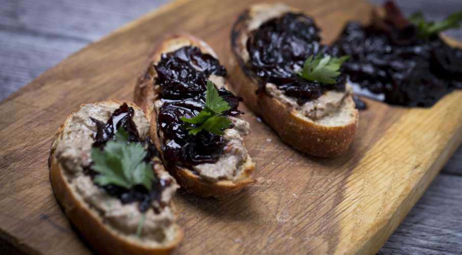 A babérlevelet és a fahéjrudat megfuttatjuk az olajon, majd rászórjuk a hagymát és tovább pirítjuk. Amikor a hagyma levet ereszt, kivesszük a babérlevelet és a fahéjat. Rászórjuk a cukrot, felöntjük a balzsamecettel, és addig párologtatjuk, míg kásás állagú lesz.