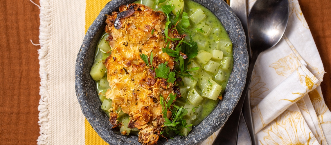 A tejszínt csomómentesre keverjük a keményítővel, besűrítjük vele a főzeléket és éppen csak összemelegítjük. A fözelékhez adjuk a finomra vágott petrezselymet és a citrom frissen reszelt héját.