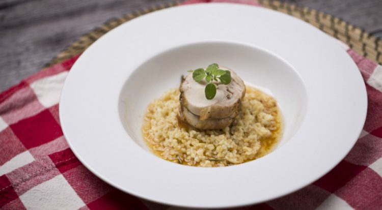 A bulgurt felöntjük forró alaplével, letakarjuk és hagyjuk állni. A szeletelt vöröshagymát kevés olajban megpirítjuk, rátesszük a darabolt nyúlmájat, majd néhány perc sütés után hozzáadjuk a csíkozott paprikát, a zúzott fokhagymát. Megszórjuk fűszerpaprikával, sózzuk, borsozzuk és kevés alaplével vagy vízzel felöntjük. Néhány perc alatt puhára pároljuk. Belekeverjük a cikkezett paradicsomot és a friss, vágott majorannát. Az átkevert bulgurral és a szeletelt nyúlgerinc filével tálaljuk.