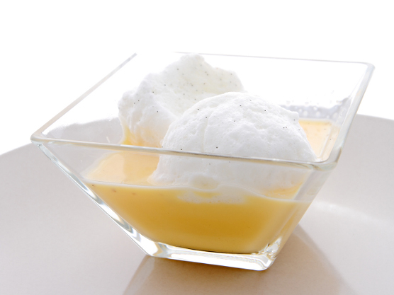 Fél liter zsírszegény tejet egy vaníliarúd belsejével felfőzünk. 7 db tojássárgáját nyírfacukorral fehérre habosítunk, majd vékony sugárban hozzácsurgatjuk a felforrt tejet és vízgőzön besűrítjük.