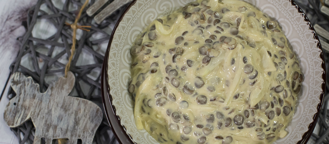 illetve a fokhagymás lében főzött, lehűtött lencsével összekeverem.