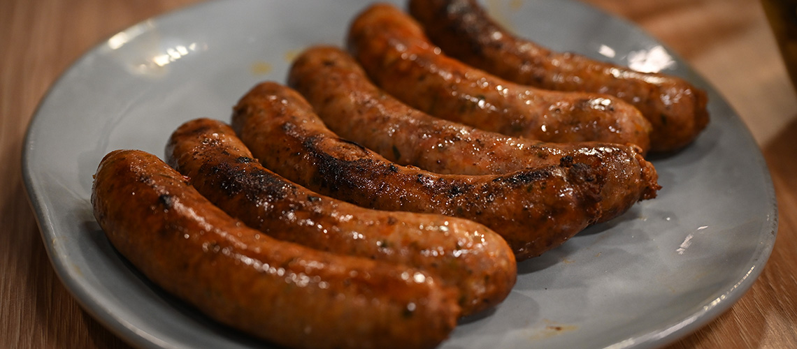 A fűszereket, a paprika kivételével, száraz serpenyőben megpirítjuk, amikor füstöl, és illatozni kezd, levesszük. Mozsárban finomra őröljük. A húst összekeverjük a hájal, hozzákeverjük a pirospaprikát, a fűszereket, a lereszelt fokhagymát, a friss koriandert, a harisszát, sózzuk, borsozzuk. Betöltjük a bélbe. Grillezve vagy sütve fogyasztjuk.