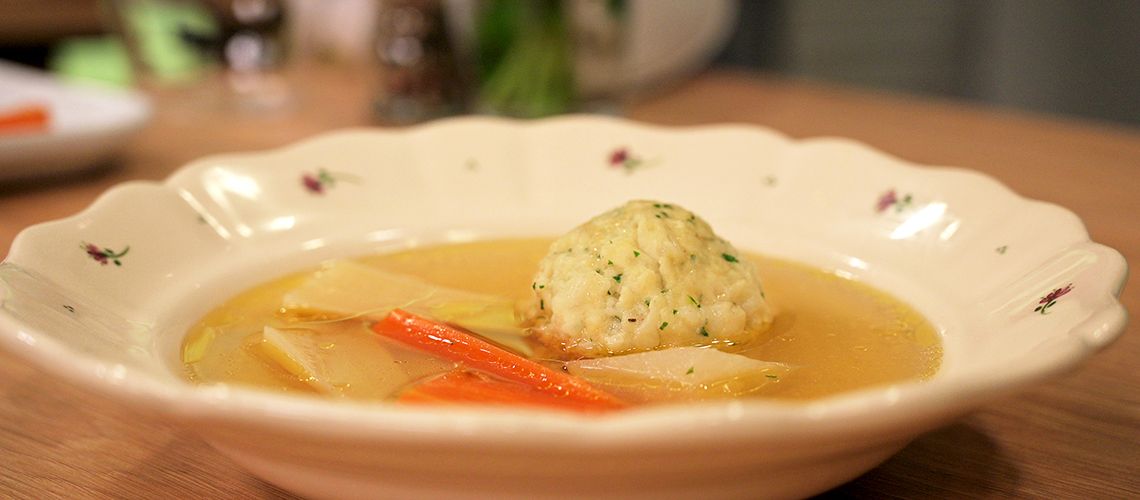 Darabokra tördelem a pászkalapot és meleg vízbe áztatom. Szétválasztom a tojásokat. Egy tálba teszem a sárgáját, ehhez hozzáadom az olvasztott libazsírt. Belekeverem a kinyomkodott, puha pászkát, a petrezselyemzöldet. Felverem a tojások fehérjét és óvatosan belekeverem a tojásos masszába. Annyi maceszlisztet keverek bele, amennyit felvesz. Sózom, borsozom. (Mi gyömbért nem teszünk bele) Lágy, de formázható masszát kell kapni. 10 percet pihentetem. Nagy méretű gömböcöket formázok a masszából (nálunk ilyen nagy a maceszgombóc) Egy hatalmas lábasban vizet forralok. Lobogó, sós vízben megfőzöm a gombócokat. Ez elég sokáig tart. 15-20 percig kell fedő alatt főzni, hogy ne legyen kemény a közepe.