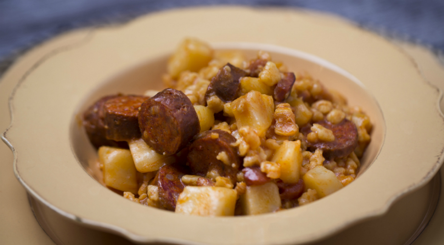 Kockára vágott kolozsvári szalonnán megpirítjuk a finomra vágott vöröshagymát, hozzáadjuk a tarhonyát, majd tovább pirítjuk. Ekkor tesszük bele a szintén darabolt burgonyát és fokhagymával, fűszerpaprikával, borssal fűszerezzük. Felengedjük két és félszeres mennyiségű vízzel, belerakjuk a karikázott füstölt kolbászt és fedő alatt puhára pároljuk.