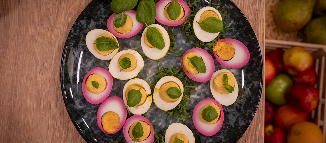 Pink tojás: A tojásokat 8 perc alatt keményre főzzük, megtisztítjuk. A meghámozott főtt tojásokat egy üvegtálba vagy műanyag tárolódobozba tesszük, és felöntjük a céklalével úgy, hogy teljesen ellepje őket (a céklalé pontos mennyisége az edény méretétől, formájától is függ). Lefedjük, majd az edényt egy éjszakára a hűtőbe tesszük. Maximum 18 órán át érdemes pácolni, úgy lesz a leglátványosabb, ha ugyanis a tojásokat ennél tovább hagyjuk a lében állni, akkor nem csak a fehérjét, hanem a sárgáját is rózsaszínűre festi a cékla.