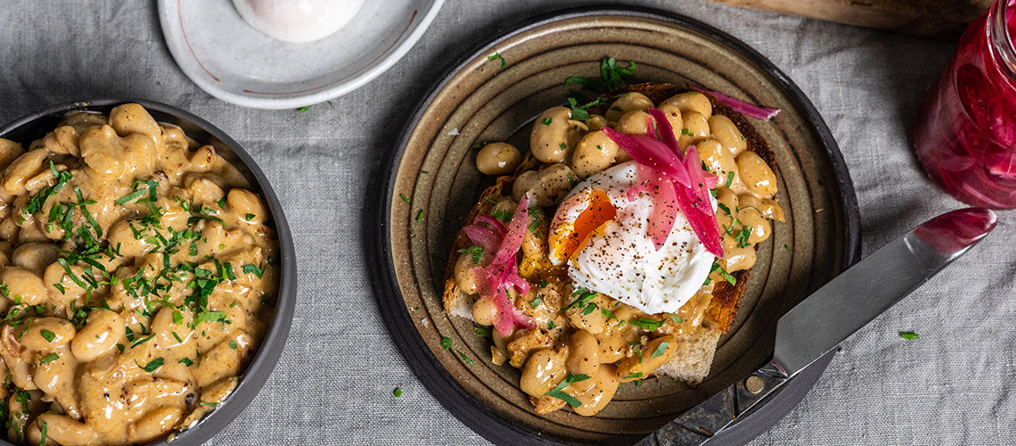 Pirítósra kanalazzuk, pácolt hagymával és buggyantott tojással tálaljuk.