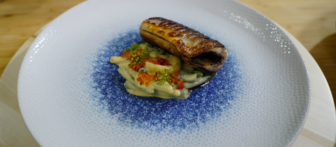 Radu igencsak büszke szülőfalujára, Topalura. A gyerekkorára emlékeztető halételt újraálmodta, és sárga valamint zöldhüvelyű babbal tálalta, amit nyaköntött egy fenséges mustáros, tormás, joghurtos öntettel.