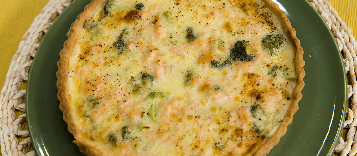 Sózott lazac és brokkoli torta ugyanazon a krémsajtos alapon