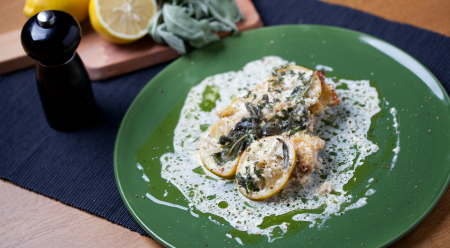 A csirkét kicsontozzuk, megszórjuk sóval és borssal, majd olívaolajon megpirítjuk. Amikor a bőre már aranybarnára pirult sütőtálba tesszük. A csirkére tegyünk cittromszeleteket és zsálya leveleket. Megszórjuk sóval és borssal, meglocsoljuk tejszínnel.