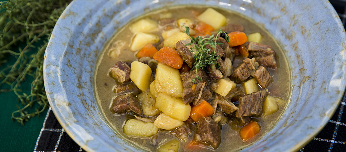 Ezután öntsük bele a vörösbort, majd a felkockázott burgonyát is. Ha szükséges, pótoljunk még egy kevés vizet, de figyeljünk arra, hogy ne leves, hanem sűrű, gazdag ragu legyen. Készre főzzük.