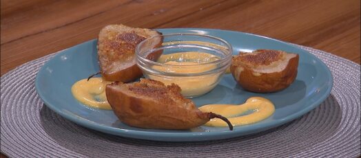 TOJÁSSÁRGÁJÁVALTÖLTÖTT RAVIOLI BARNÍTOTTT VAJJAL, PIRÍTOTT ZSÁLYALEVÉLLEL