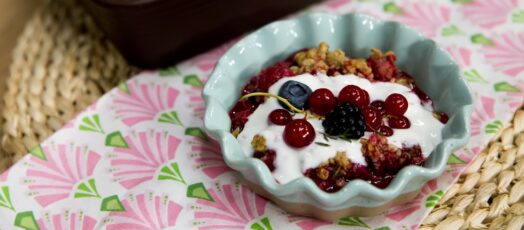 Ropogós alapú torta, vaníliás mouseline és friss erdei gyümölcsökkel