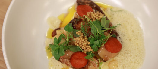 Sült kacsamáj – Kínai öt fűszer/ birsalma/ szarvasgombás burgonyapüré