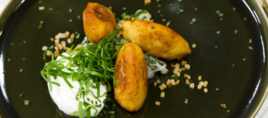 Dödölle, tavaszi hagyma saláta, mangalica szalonna, tejföl