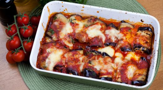 Padlizsántekercs Fűszeres Paradicsomszószban