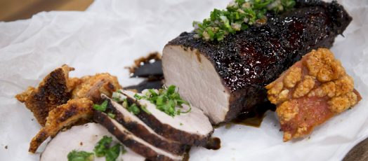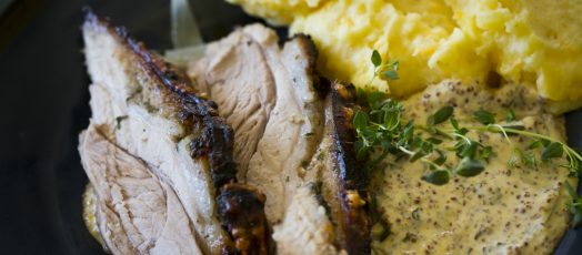 Balzsamosan sült sertéskaraj toszkán kenyérsalátával (panzanella)
