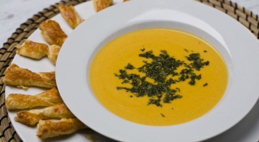 Sárgarépa-Póréhagyma Krémleves Sajtos Ropogóssal