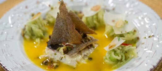 SÜLT PISZTRÁNG TÖKFŐZELÉKKEL, TEPERTŐVEL