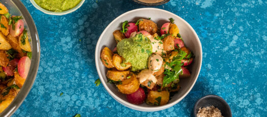 Újburgonya saláta sült retekkel