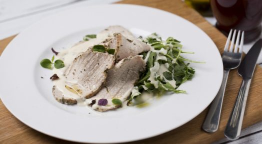 Zöldfűszeres Kéregben Sült Karaj Selymes, Meleg Gorgonzola Szósszal