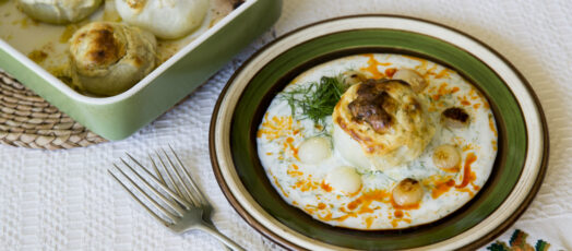 Joghurtos padlizsánsaláta petrezselyemmel és chiliolajjal